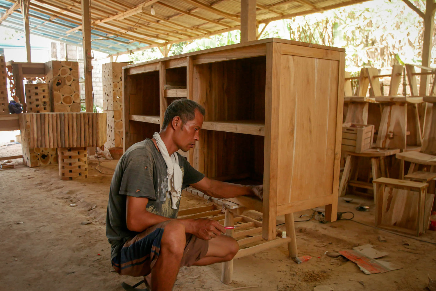 Chaque article est crée avec minutie et passion par nos artisans expérimentés, qui mettent tout leur savoir-faire au service de la fabrication de meubles exceptionnels. Chaque étape du processus est réalisée avec soin, depuis la sélection rigoureuse des matériaux de qualité jusqu'à la touche finale apportée à chaque détail. Nous accordons une attention particulière à la durabilité et à la résistance de nos meubles, en utilisant des matériaux soigneusement choisis pour leur beauté naturelle et leur solidité. Le résultat est une sélection de pièces uniques conçues pour vous offrir une qualité incomparable qui résistera à l'épreuve du temps.