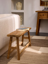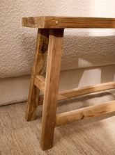 Bring a touch of natural elegance to your home with this 90cm Léon recycled teak bench. Its vintage design and integrated footrest make it the perfect accent piece to enhance any space, combining authentic charm with modern functionality.