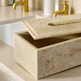 Add a touch of timeless elegance to your home with this beautiful tissue box, carefully handcrafted from solid marble. Designed to blend seamlessly into any space, whether on your desk, in your bathroom, kitchen, or any other room in your home, this piece combines aesthetics and functionality. The large oval opening on the top allows for easy and convenient access to tissues, while preserving the beauty and integrity of the marble. This choice of material not only elevates the overall appearance of the box, but also ensures its durability and resistance over time. An everyday object transformed into a work of art, this tissue box is sure to captivate the eye and add a touch of sophistication to your decor.