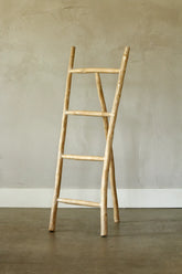 Naturally stylish and authentic, this teak branch ladder will be perfect in both boho and Scandinavian decor. With its removable leg at the back that keeps it upright, it will be a very practical item for hanging your throws, bath towels, or other decorative items.