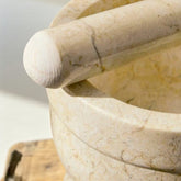 The Marble Mortar and Pestle Set is not only a practical tool for efficiently grinding herbs and spices, releasing their intense aromas and flavors; it also makes an elegant and sophisticated decorative element for any kitchen countertop. Made of marble, a material known for its durability and timeless aesthetics, this set combines functionality and style. Marble, with its unique veining, brings a touch of nature and refinement to the culinary space, while being extremely effective in achieving the perfect texture of crushed ingredients. Whether preparing traditional recipes or exploring modern culinary creations, this mortar and pestle set is a must-have for cooking enthusiasts who appreciate quality and elegance.