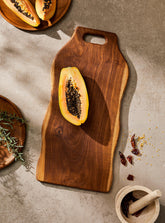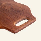 Teak wood cutting board handmade in Ubud, Bali. With its wavy side lines, handle and rich natural coloring, this item will be a beautiful addition to your kitchen and when entertaining.