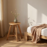 Ce tabouret rond vintage en teck, fabriqué artisanalement à partir de bois recyclé, allie charme ancien et durabilité. Sa polyvalence en fait un meuble idéal, que ce soit comme banc d’appoint, table de chevet ou élément décoratif, apportant une touche élégante et authentique à tout intérieur.